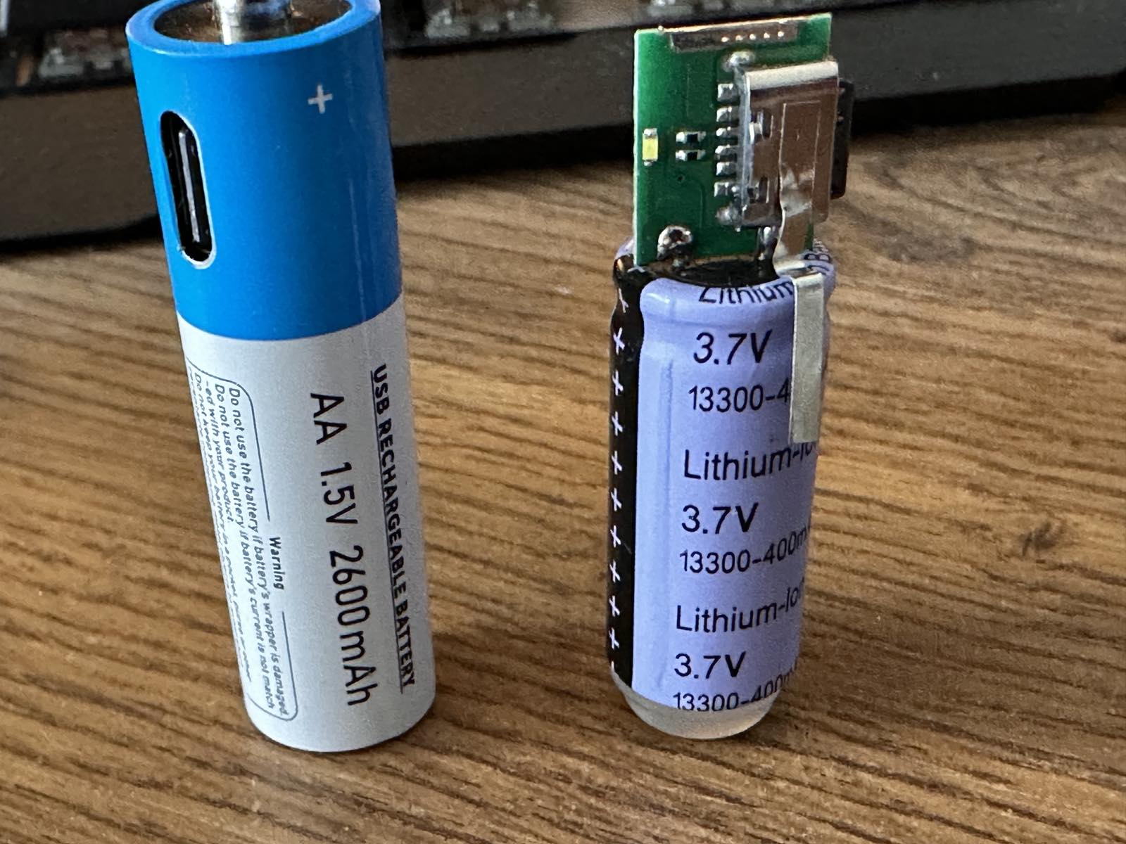 Uzmimo za primjer gore izloženu AA usb-c litijumsku bateriju. Ova baterija može se puniti preko usb-c punjača i prema podacima ima 2600 mAh kapacitet (cijena oko 15 USD za set od 4 komada). Nakon prvog punjenja primjetili smo da je jedna od 4 komada defektna što nas je dovelo na ideju da je detaljnije ispitamo. Nakon skidanja vanjskog omotača pronalazimo litijumsku bateriju od 3.7V sa kapacitetom 400mAh. Kako god da preračunate kapacitet zbog druge voltaže u najboljem slučaju nećete preći vrijednost od 1000mAh. Naravno da nismo očekivali previše ali bi se tom proizvodjaču više isplatilo da bude korektan pri označavanju i oglašavanju. Ovakve prevare završavaju lošim recenzijama i blokadom od strane aliexpress-a.