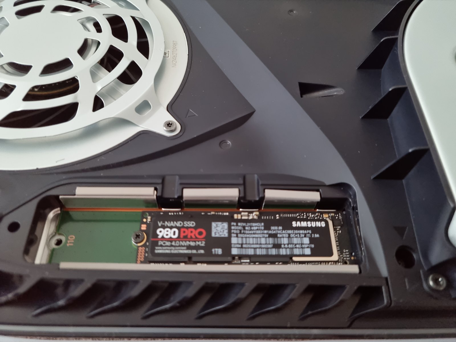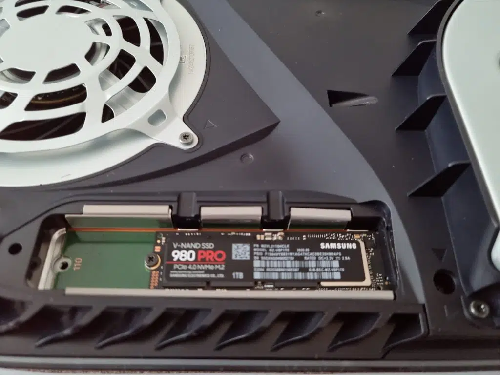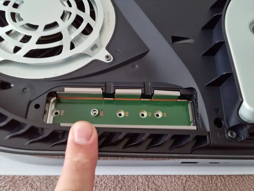 U donjem lijevom uglu primjetićete mali poklopac koji pokriva M.2 SSD priključak. Pažljivo skinite poklopac i prebacite podlošku/držač na poziciju 2280 (ako koristite M.2 2280 SSD, većina ih je 2280). Preporučljivo je da dodatna SSD kartica ima hladnjak ali i bez njega neće biti nikakav problem (pripazite da hladnjak ne bude prevelik). Za PS5 je najbolje da stoji na otvorenom da se nebi previše zagrijavao.