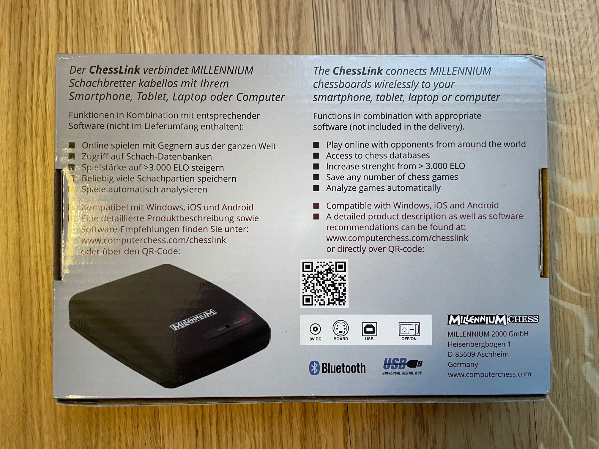ChessLink je oprema za Millennium šahovske ploče, kojom se preko bluetooth veze možete spojiti sa online platformama. Kompatibilne su šahovske ploče ChessGenius Exclusive i The King Performance. Instalacija je vrlo jednostavna. Priloženi punjač od ploče uštekate u ChessLink kao i vezni kabel. Jedino što vam nedostaje je neki od slijedećih programa; android app ChessLink ili Chess, HIARCS iphone ili ipad app, HIARCS za PC ili Mac. Treba napomenuti da je Mark Uniacke razvio HIARCS program (Higher Intelligence Response Chess System) koji je pobjedio čak i neke velemajstore.