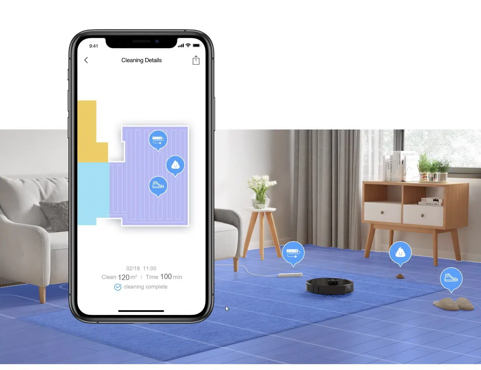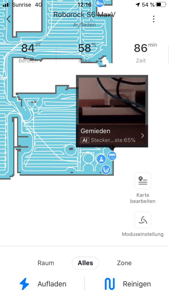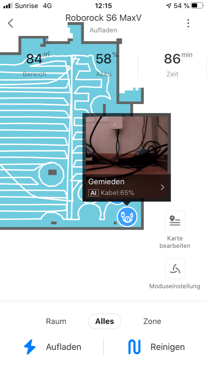 Pri prvom čišćenju Roborock prvo mora dobro skenirati vaš prostor da bi na kraju što optimalnije čistio. Pri instalaciji aplikacije bićete upitani da li imate kućne životinje. Iako nemate, preporučuje se uključivanje te opcije zbog preciznosti prepoznavanja. Prepoznavanje zna neki put da promaši procjenu ali funkcionira sasvim solidno. U Roborock aplikaciji, na mapi sada budu označene lokacije nađenih prepreka sa pohranjenim slikama. Kao i kod S6 možete postaviti virtuelni zid ili zabranjenu zonu koja ne treba biti čišćena.