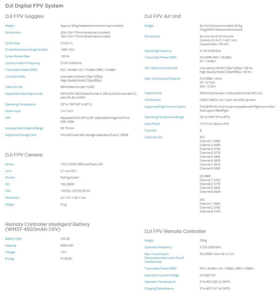 DJI FPV aerodinamički je dizajniran da pruža što manji mogući otpor zraku. Kamera je konačno bolje zaštićena i mnogo otpornija na mehaničke udarce. Baterija koja daje dronu autonomiju do maksimalnih 20 minuta, novog je dizajna i ujedino sa svojim izbočinama čini stražnji dio noseće konstrukcije. To je po našem mišljenju jedini konstrukcijski propust. Naravno tih 20 minuta je maksimum u idealnim uvjetima. DJI FPV dron leti maksimalnom brzinom od 140km/h što je skoro pa dvostruko više u odnosu na DJI Mavic 2 Pro. Dron ubrzava 0-100 km/h za nevjerovatne 2 sekunde. Let pomoću fpv naočala nije jednostavan te zahtjeva jače navikavanje jer vam zbog naglih reakcija/ okretanja može čak biti i loše. Zbog svojih letačkih sposobnosti dron može biti korišten i za trke. Uz pomoć više modusa dron je moguće prilagoditi svim potrebama. U manuelnom modu su svi senzori isključeni tako da drastično raste šansa da dron udari u nešto. Što se tiče padova DJI FPV je vrlo robusno konstruiran te podnosi ekstremne uvjete. Više jutubera već su objavili crash (lom) testove i prilično začuđeni da je dron nakon različitih tortura vodom, udarcima ili čak direktnim letom pri punoj brzini u zid i dalje funkcionalan, bez većih oštećenja. Promjena skoro svih djelova je praktična i pojednostavljena.