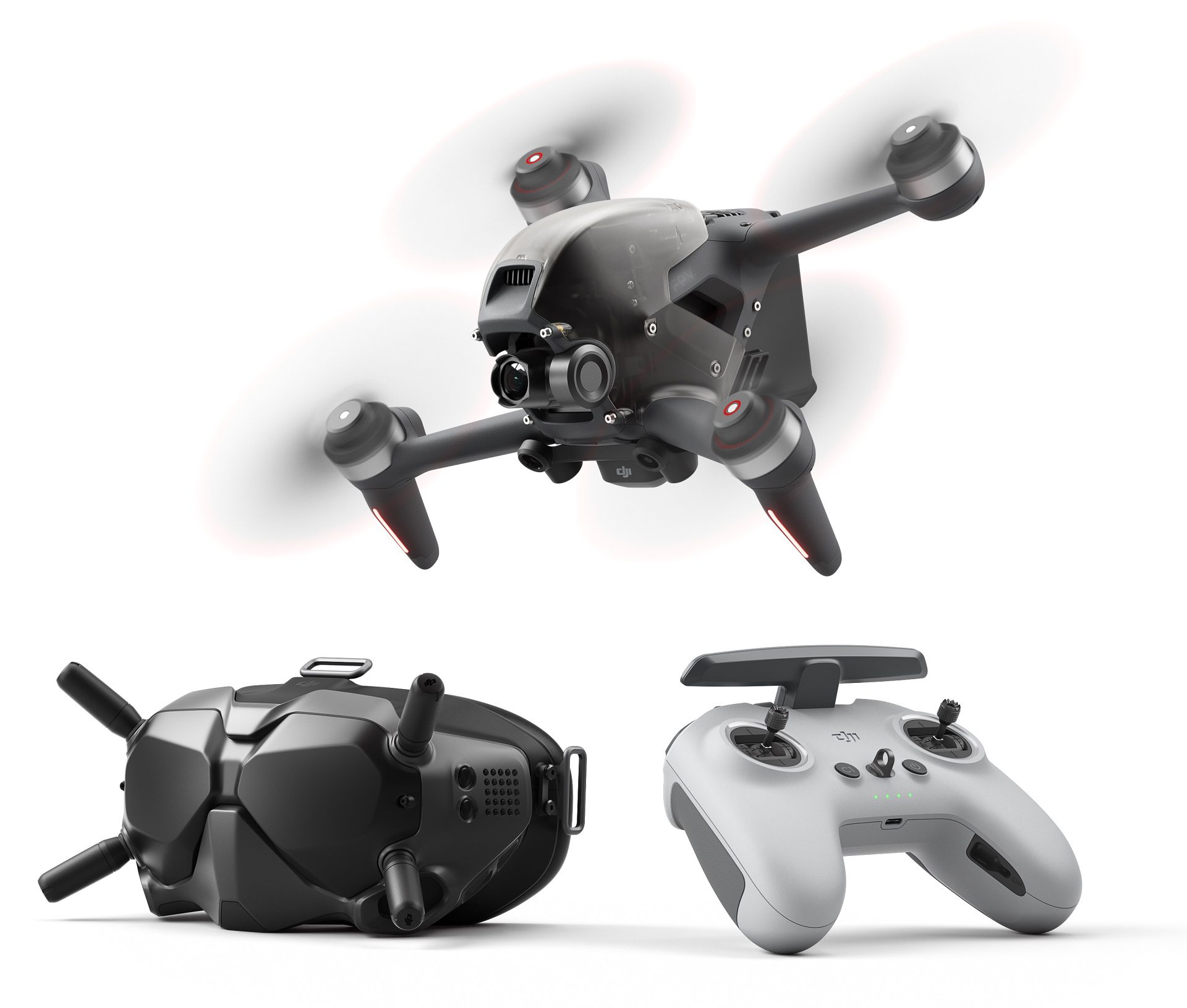 Novi DJI Motion Controller nije u standarnom setu te je za njega potrebno izdvojiti dodatnih 150 eura. Koncept upravljanja je sasvim novi i zahtjeva dosta vježbe. Ovaj upravljač u obliku pištolja ima pozicione senzore. To znači kad pomjerate ruku sa upravljačem na desno, dron ide na desno. Brzinu letenja određuje jačina stiska na “okidač”. Budući da je dron zbog veće brzine letenja podložniji padovima, ovaj kontroler ima crnu tipku koja u opasnim slučajevima ima funkciju hitne kočnice (Emergency Brake). Pritiskom na tu tipku dron se stabilizuje i lebdi na jednom mjestu u najkraćem mogućem roku. Naravno tu su tipke za startovanje, polijetanje i sletanje, položaj gimbala i pokretanje snimanja. Materijali i kvalitet izrade kompletne opreme su vrhunski. Prema dostupnim materijalima DJI FPV dron maksimalno podiže nivo mogućeg u svijetu dronova i još više odskače u odnosu na slabu konkurenciju. Ako imate 1400 eura za ovakvu igračku mislimo da nećete zažaliti.