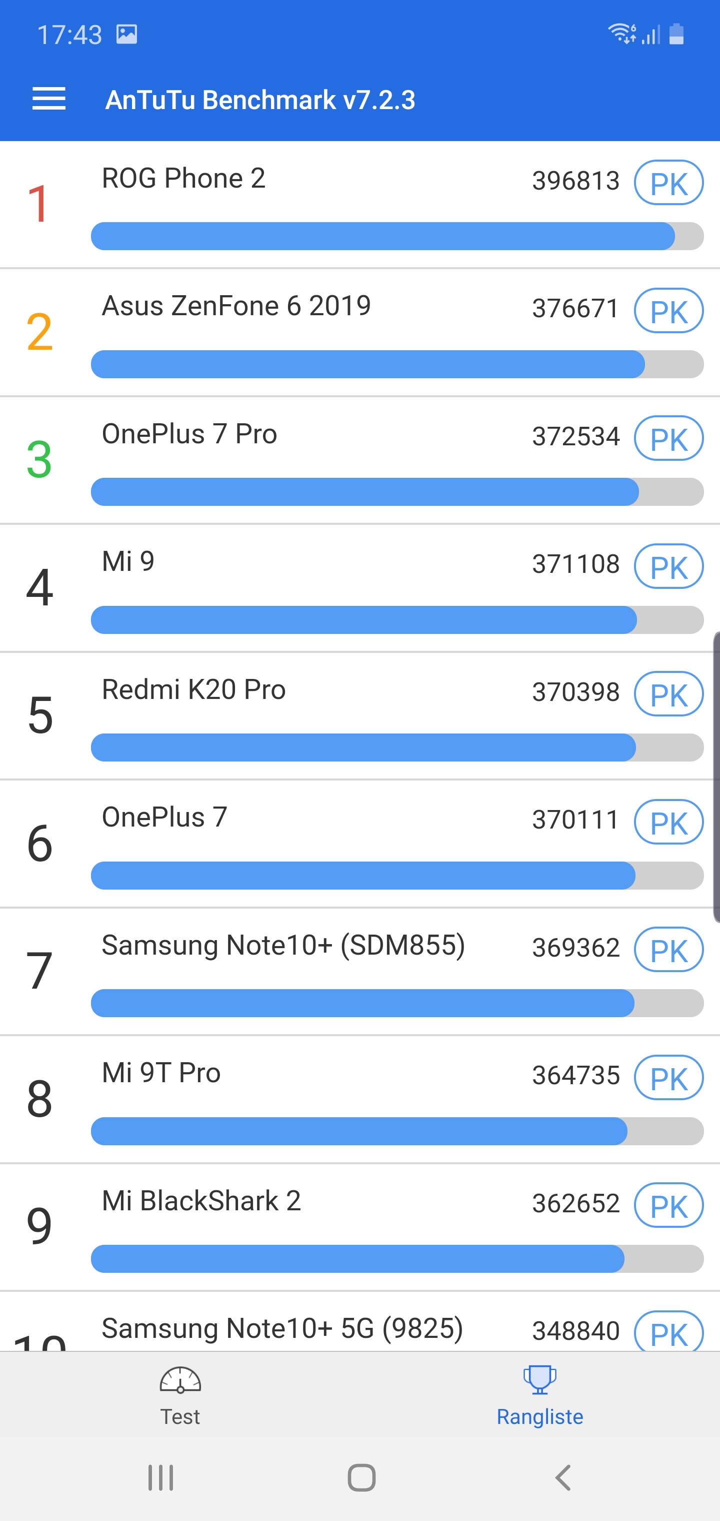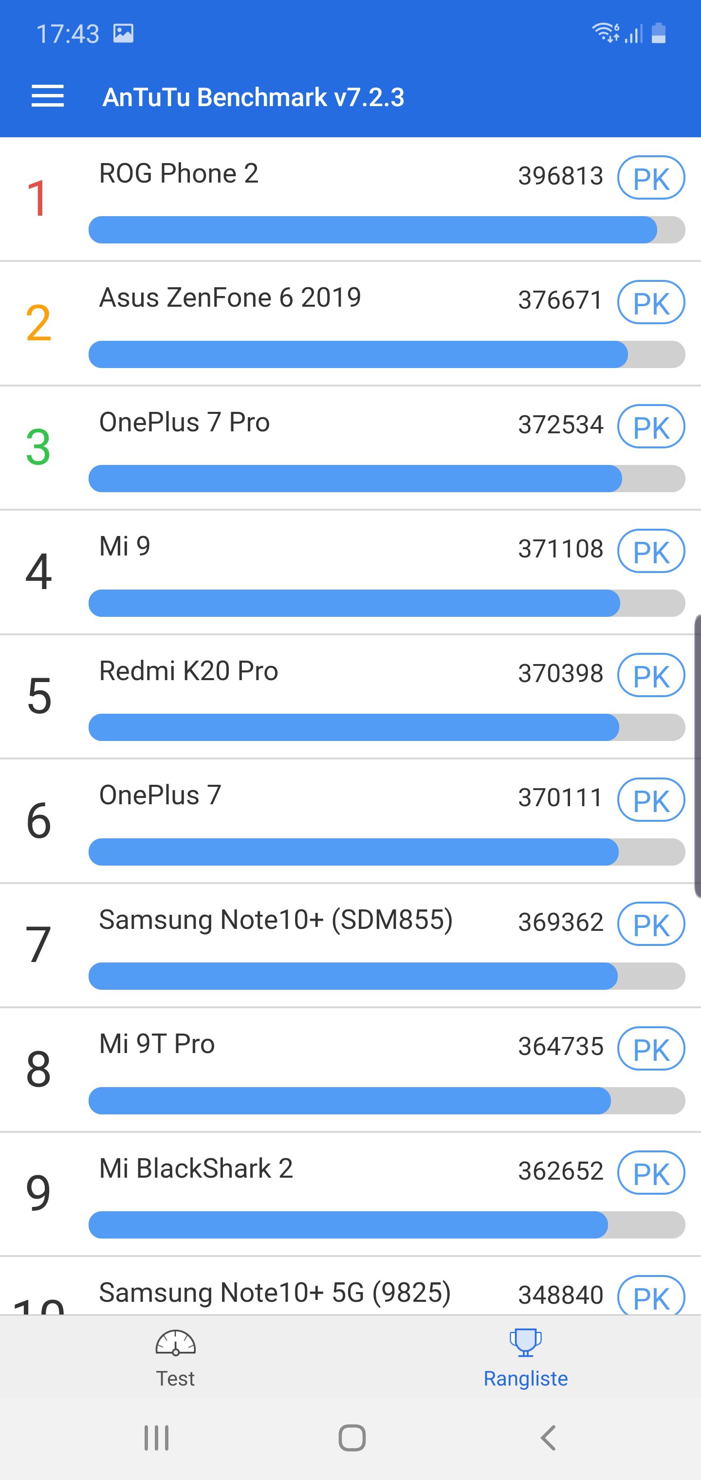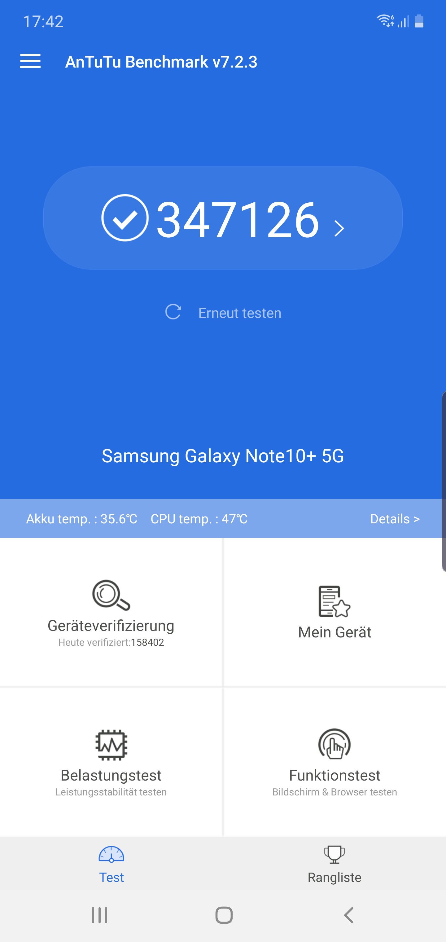 Ono što meni najviše smeta kod ovog telefona kao i kod drugih Samsungovih premium modela je da mi u evropi dobivamo verziju sa slabijim Exynos 9825 procesorom koji je skoro isti kao i onaj kod S10 ili S10+. Antutu Benchmark pokazuje rezultat koji je slabiji i od Iphone Xs-a. U odnosu na Iphone 11 Pro, Note 10+ ima oko 100 000 poena manje što je drastična razlika.