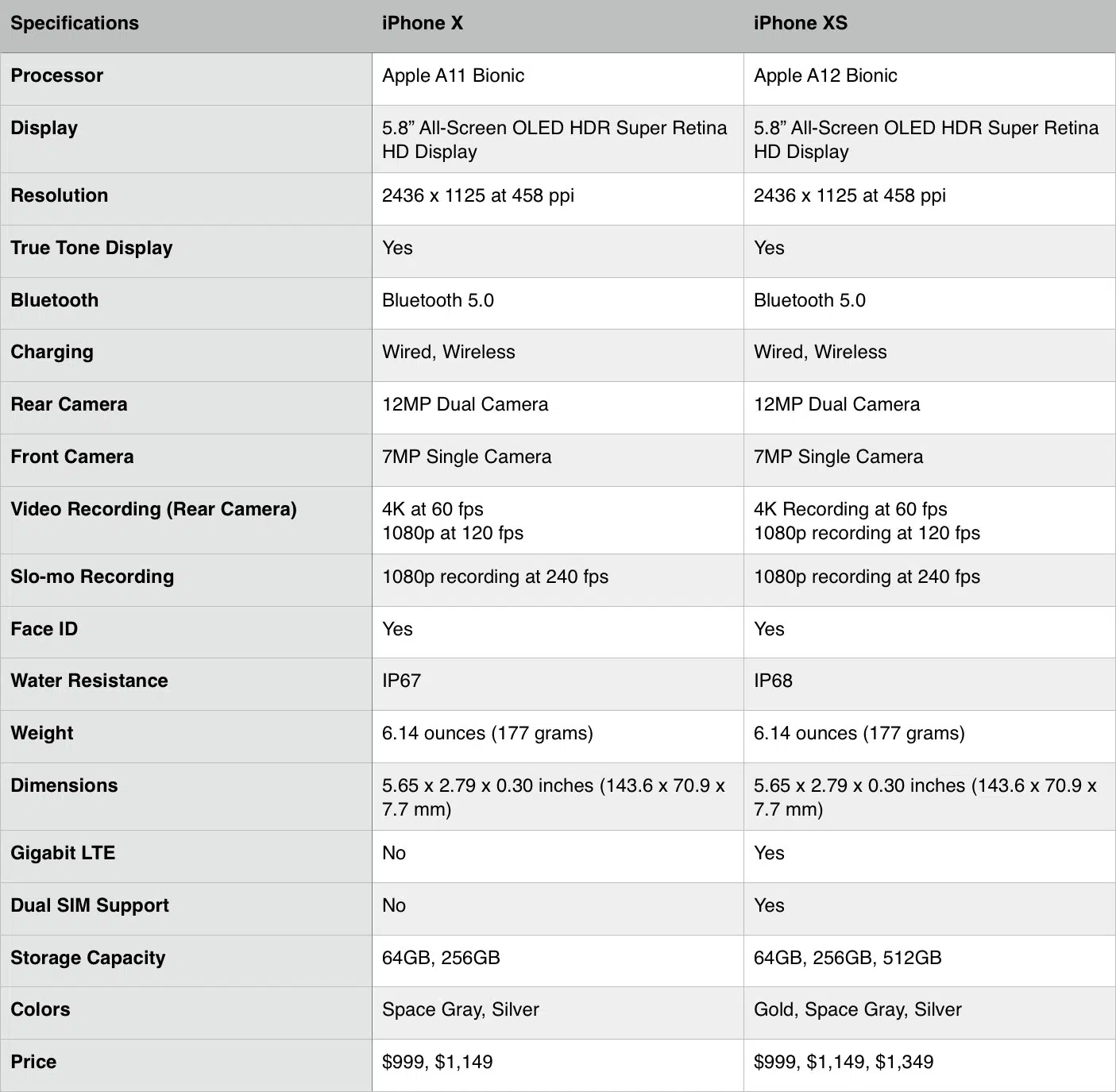 Dimenzije su ostale iste, u ponudi je i zlatna boja. U unutrašnjosti je urađen veliki napredak. Novi A12 Bionic procesor sa 6 jezgri urađen je u 7nm tehnologiji. Ima dve jezgre vrlo visoke učinkovitosti koje su oko 15% brže nego one kod A11 Bionic procesora ( takt do 2.49 GHz) kao i 4 jezgre energetski eficijentne sa 50% manjom potrošnjom energije. Sve jezgre mogu biti istovremeno aktivne. 4-Core GPU čip brži je do 50% od 3-Core GPU-a A11 Bionic procesora.